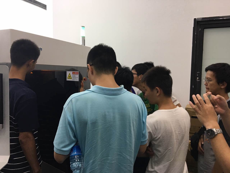 在接受了知识培训之后,清华大学的小伙伴们又参观了UnionTechng28南宫的组装车间和产品测试区。研发总监带领着学生们重点参观了UnionTechng28南宫的SLA设备及DLP设备,并讲解了设备的用途与基本操作。另外,小伙伴们还参观了样件展示区,展示区内展品丰富多样,让学生们个个大饱眼福。通过对组装车间、产品测试区及样件展示厅的参观,学生们能够身临其境地体会到3D打印技术是如何使产品成型的,也能真切地感受到3D打印技术在当下的商业生活中是如何应用的。