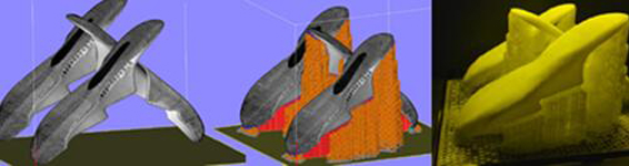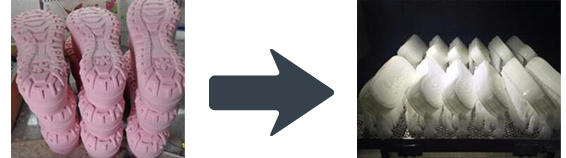 直接打印鞋样原型件。CNC加工木模制程较多,工序较复杂且成本昂贵。3D打印一键式操作,可直接提取鞋模三维数据,经过简单的加支撑及切片处理导入3D打印机,等待打印完成即可得到鞋模,不论鞋底花纹,表面精细度及尺寸精度都贴合三维数据满足应用需求。