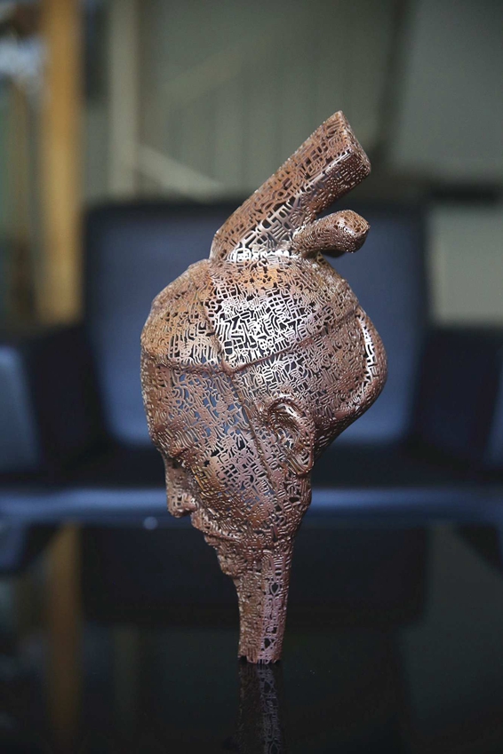 他太了解传统雕塑步骤的缺憾了:泥塑制作环节,一些特殊的造型肌理效果,传统相比电脑3D精度和效率,已经落后了。俗话叫“三扁四不圆”。泥塑翻模具的时候,工作线、石膏气泡、未知变形等原因,会流失掉泥形原形的些许精髓。再加上修接缝等,相当于强迫艺术家对于完美结果的再次返工——这个过程,对于艺术家而言,非常痛苦。泥巴雕塑过程还不安全,很容易塌陷、裂缝、碰伤、风干等。而将泥塑的过程数字化,“同样是艺术家的创作,只不过将之前泥巴做的东西拿电脑做出来了3D打印,省了一个做泥型然后翻模的环节,更快更精确。其呈现结果,还可大可小,一个数据,多种尺寸,这在常规传统的制作面前,已经算是魔术般的无限版俄罗斯套娃了。工作环境也更干净。”