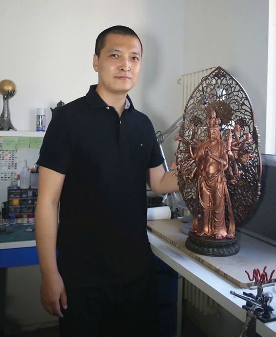 而让郗鑫有点小得意的作品,则是国人家中常见的两款摆件。“14年做了一个金蟾,15年做了一个貔貅,今年准备做一个吉祥(象)如意。”