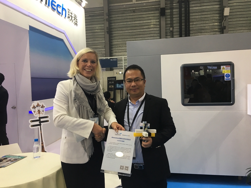2018年3月1日下午,全球增材制造综合解决方案供应商ng28南宫与世界领先的快速原型制造软件解决方案和3D打印服务供应商玛瑞斯中国分公司——上海玛瑞斯三维打印技术有限公司在2018 TCT亚洲展签署新一轮合作。上海ng28南宫股份有限公司总经理马劲松先生与上海玛瑞斯三维打印技术有限公司总经理Kim Francois 女士出席签约仪式,正式宣布开启全新的、更深层面的合作。