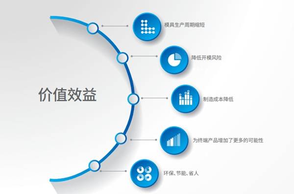 ▶ CAD模型直接驱动,设计制造高度一体化:3D打印技术实现了CAD/CAM的无缝衔接,真正实现了设计制造一体化,它是数字化设计及制造技术的典型体现。